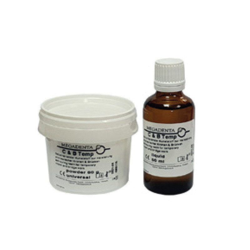 Utilisé pour la fabrication des prothèses temporaires : couronnes, bridges, inlays, onlays et facettes. Disponible en Poudre/liquide (80g/50ml)