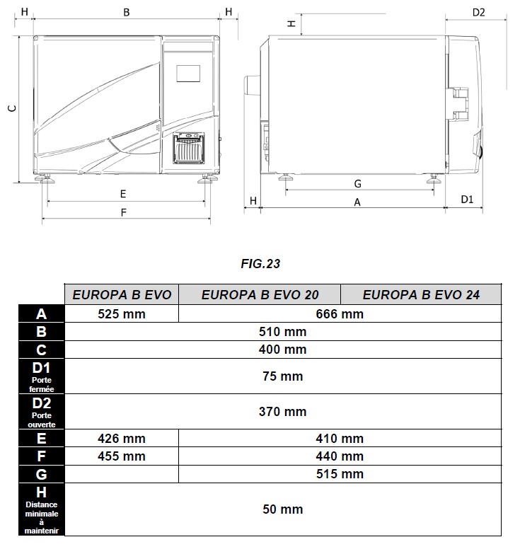 Les autoclaves Europa B Evo et Europa B Evo 24 disposent de :