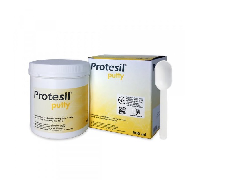 Protesil Putty est un élastomère de silicone à condensation, qui se caractérise par sa consistance et sa viscosité élevées. Son utilisation est indiquée pour la prise de la première prise d’empreinte dans la technique de la double prise d’empreinte. Il est agréable à utiliser car sa consistance est souple lors de la manipulation et présente une dureté élevée après vulcanisation.